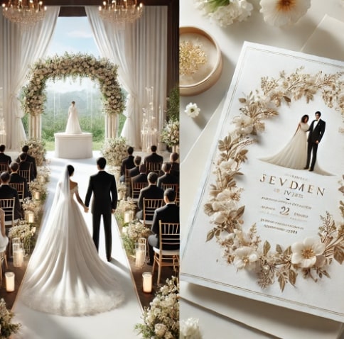 청첩장은 보통 결혼식 날짜로부터 1~2개월 전에 발송되며, 결혼식 장소, 시간, 신랑 신부의 이름과 더불어 다양한 상징적인 디자인이 포함됩니다.