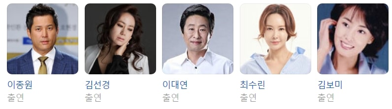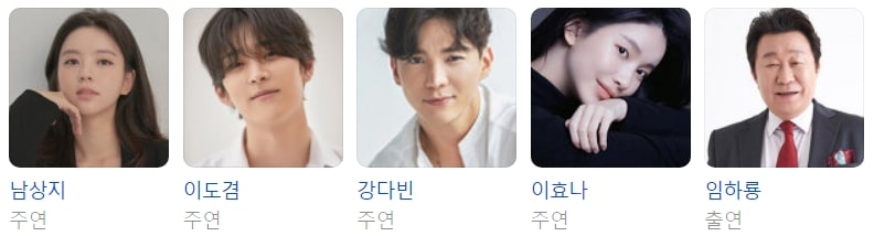 주요 등장인물로는 남상지, 이도겸, 강다빈, 이효나 배우등이 출연하며 이 외에도 임하룡, 김선경, 이종원, 이대연, 최수린, 안영홍, 김보미 배우가 출연하게 됩니다.