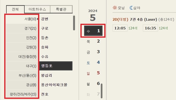 • 서울: 영등포, 왕십리, 용산아이파크몰, 하계 CGV 영화관