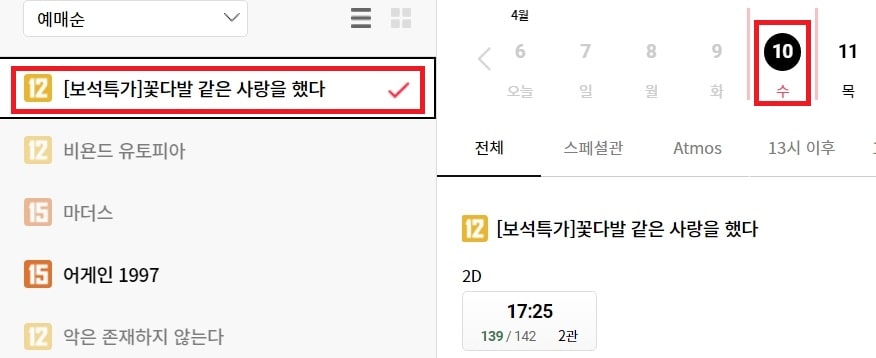 10일(수) 롯데시네마 개봉관(아래 참조) 및 소개하지 못한 지역별 상영관 및 이후 일정은 아래 소개해 드리는 영화페이지로 방문 "예매"를 누르시면 확인하실 수 있습니다.