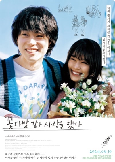 일본에서 2021년 1월 29일 개봉한 영화 "꽃다발 같은 사랑을 했다"는 한국에서 2021년 7월 14일에 개봉했으며, 이어 2024년 4월 10일 재개봉되어집니다.