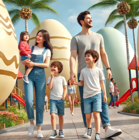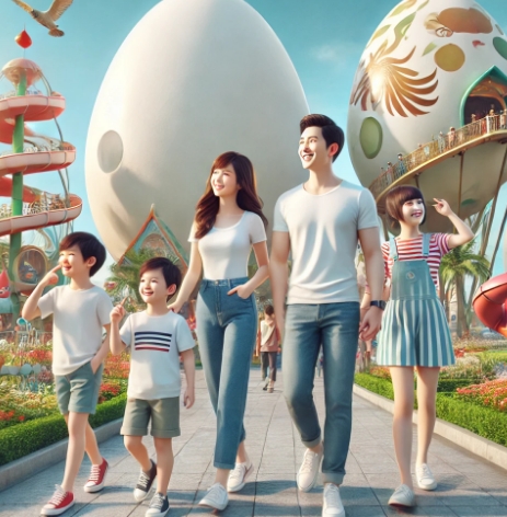 또한, 공원 내 곳곳에 달걀 모양의 조형물이 있어 가족이 사진을 찍으며 추억을 남기기에도 좋습니다.