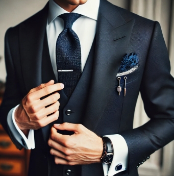 타이 핀이나 커프스 버튼 같은 작은 디테일도 추가해 고급스러운 스타일을 연출할 수 있습니다.