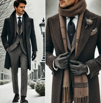 두꺼운 울 소재의 정장이나 클래식한 코트를 선택해 보온성을 높이고, 스카프나 장갑 같은 액세서리로 스타일을 더할 수 있습니다. 차분한 색상의 코트와 가죽 장갑, 체크 패턴의 스카프는 겨울의 고급스러움을 더해줍니다. 이렇게 따뜻함과 스타일을 모두 잡을 수 있는 조합이 이상적입니다.