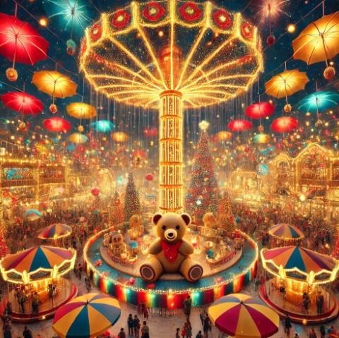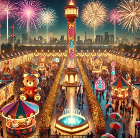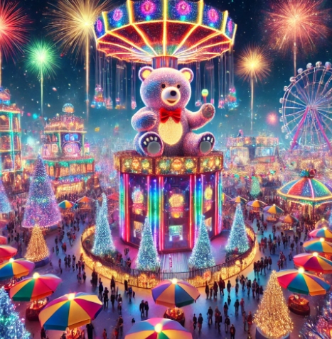 공원 곳곳에 설치된 색색의 조명은 겨울 밤하늘 아래 동화 같은 분위기를 자아내며, 방문객들은 장난감 세계에 들어선 듯한 신비로운 경험을 즐길 수 있습니다.