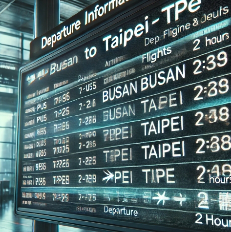 - 부산(PUS) - 타이베이(TPE): 비행시간은 약 2시간에서 2시간 20분 정도 소요됩니다.