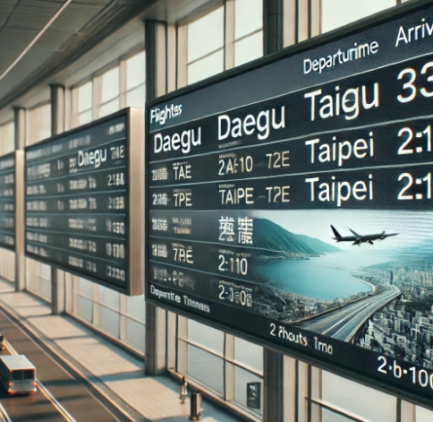 - 대구(TAE) - 타이베이(TPE): 비행시간은 약 2시간 10분에서 2시간 25분 정도 소요됩니다.