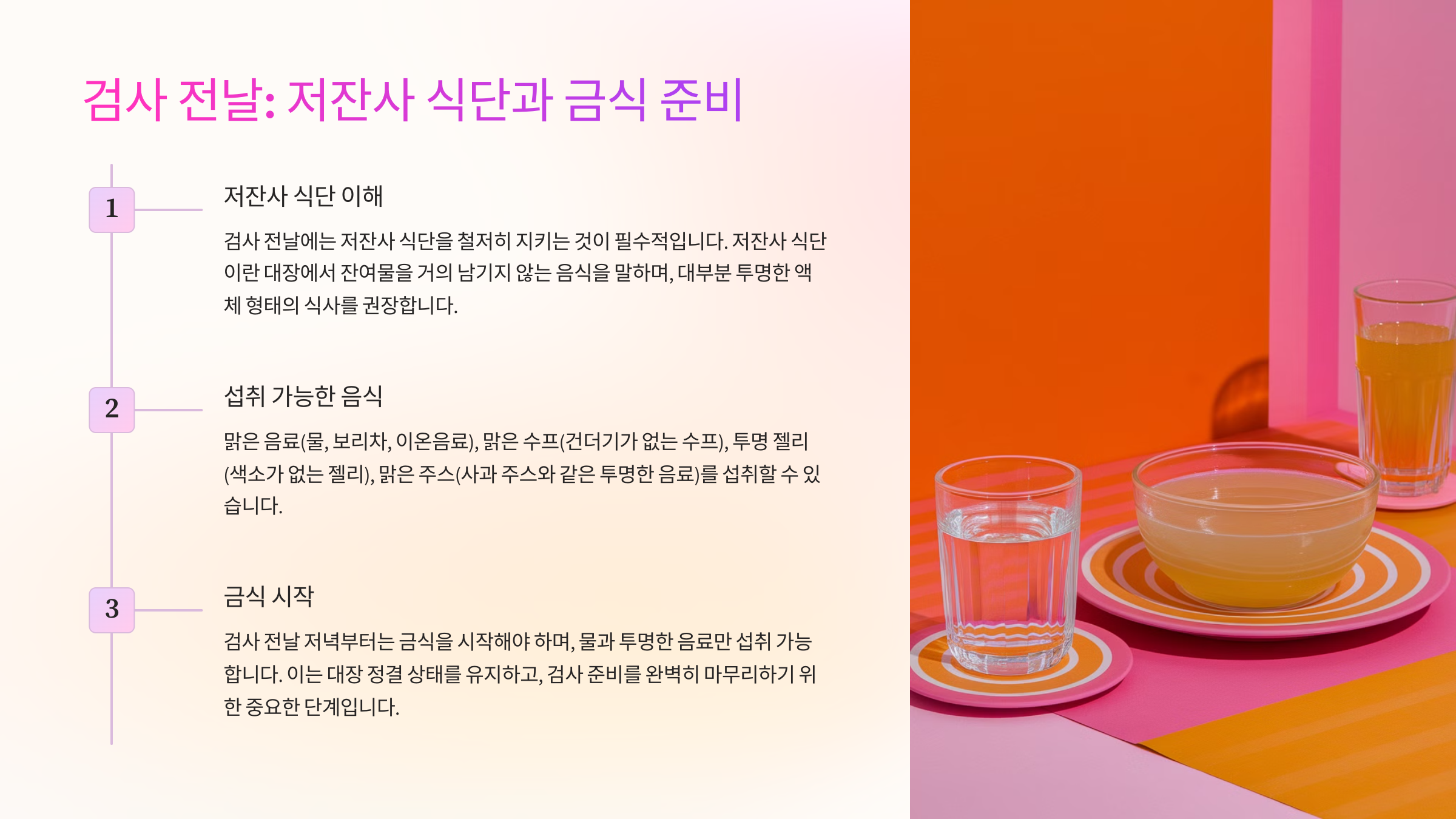 검사 전날: 저잔사 식단과 금식 준비