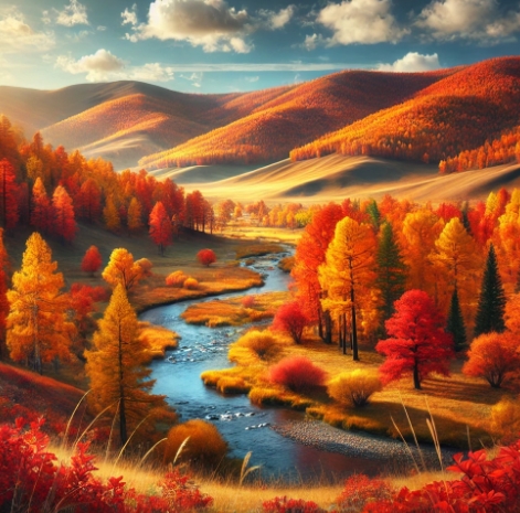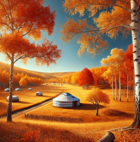 가을(9월~10월): 청명한 하늘과 붉게 물든 몽골