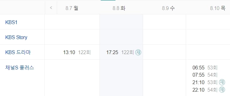 KBS1, KBS Story, KBS 드라마, 채널 S 플러스 채널을 통해 매주 편성되고 있는데, 이번 주간 편성표를 살펴보면 채널S 플러스에서 가장 많은 재방송을 편성하고 있음을 확인할 수 있습니다.
