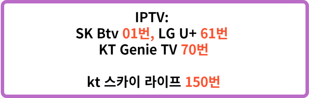 만일 지역 케이블 방송을 이용하고 계신다면 위에 있는 이미지를 선택하시면 채널 번호 확인이 가능한 홈페이지로 이동하실 수 있습니다.