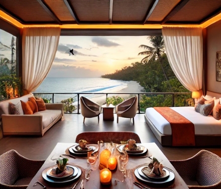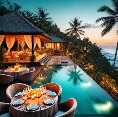 발리의 풀빌라 리조트는 프라이빗 디너 서비스를 제공해 특별한 순간을 더욱 로맨틱하게 만들어주며, 해변이나 개인 수영장 옆에서의 디너는 신혼부부에게 잊지 못할 추억을 선사합니다.