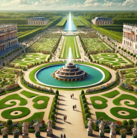 이 정원은 앙드레 르 노트르(André Le Nôtre)가 설계한 것으로, 대규모 분수와 조각상, 기하학적으로 설계된 정원 배치가 특징입니다.