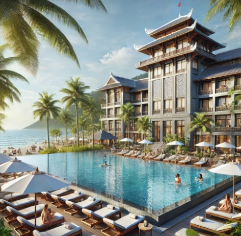 하롱베이에는 바다 전망의 고급 리조트가 많으며, 크루즈와 연계된 숙박 패키지로 하룻밤을 보내는 것도 좋습니다.