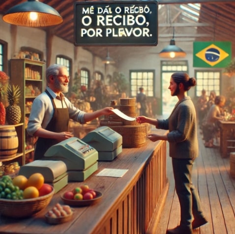 - 영수증을 주세요: Me dá o recibo, por favor. (미 다 우 헤시부, 뽀르 파보르) - 영수증을 요청할 때 유용합니다.