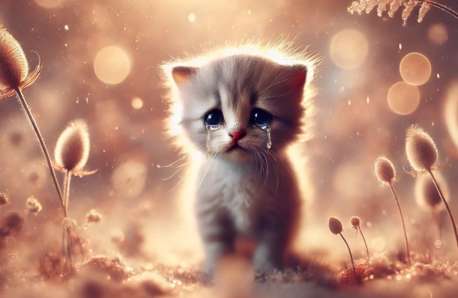 새끼 고양이가 울고 있는 장면은 외로움이나 감정적 불안정 상태를 반영합니다.