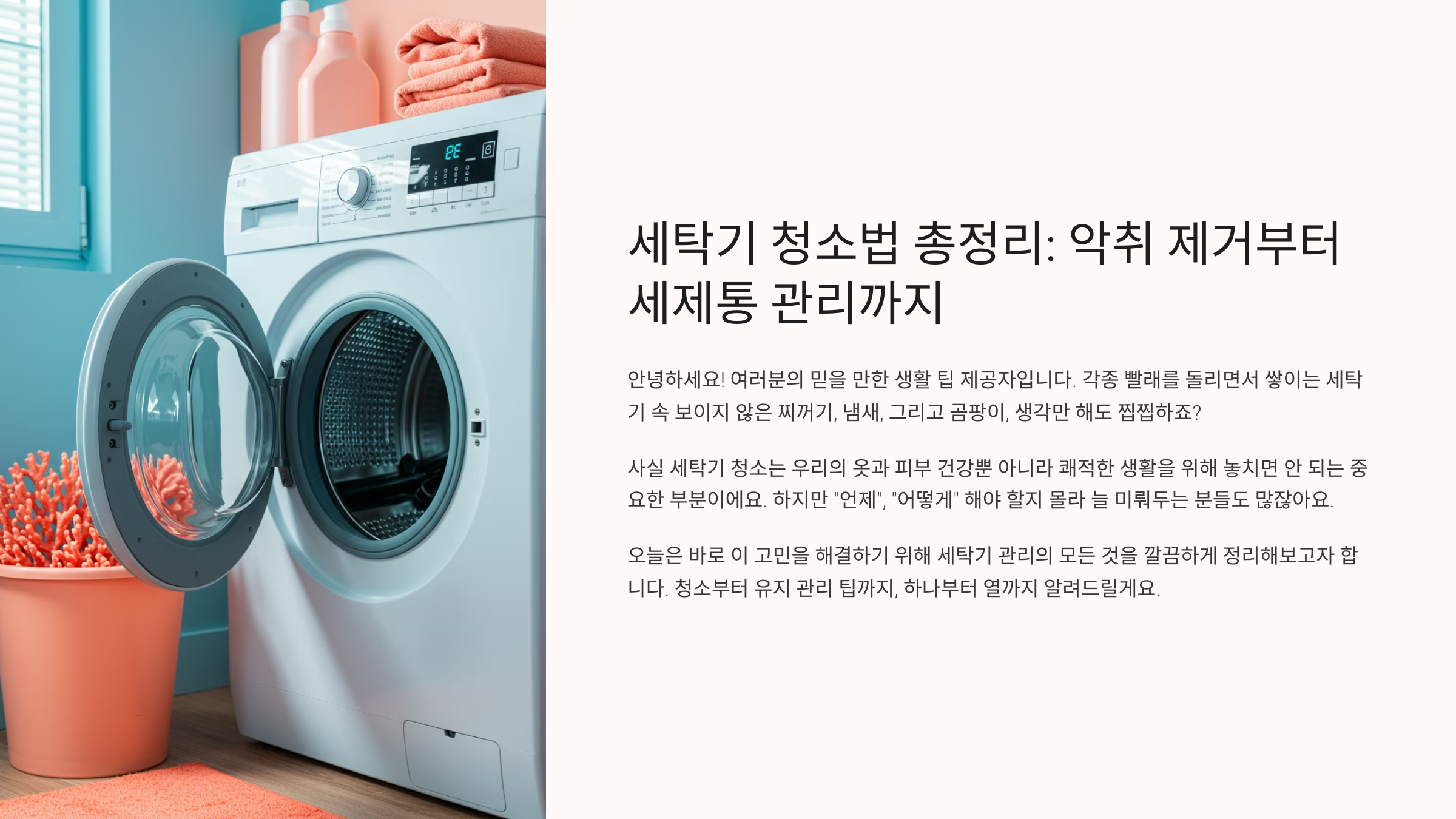 세탁기는 우리가 매일 깨끗한 옷을 얻기 위해 사용하는 핵심 가전이에요. 하지만 '세탁기 자체가 깨끗하지 않다면?'을 한번 생각해 보세요.