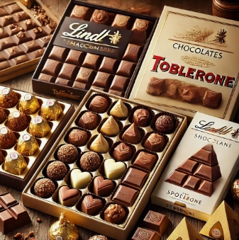 다양한 브랜드 중 린트(Lindt)는 크리미 한 식감과 부드러운 맛이 특징이고, 토블론(Toblerone)은 삼각형 모양의 독특한 디자인과 꿀, 누가가 조화를 이루는 맛으로 유명합니다.