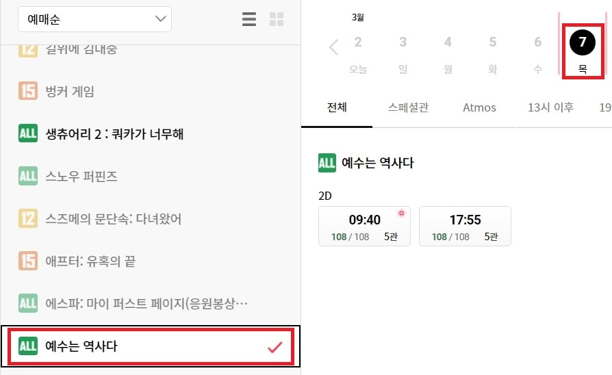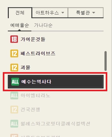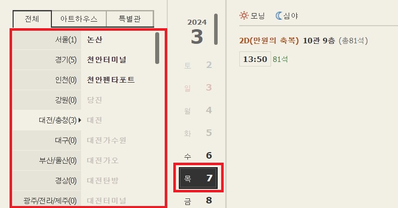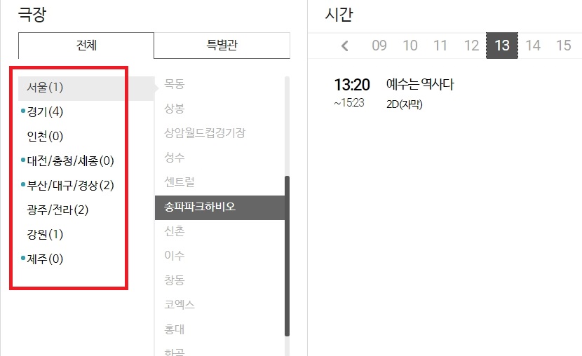 (영화페이지에서 예매를 선택하시면 확인하실 수 있습니다.)