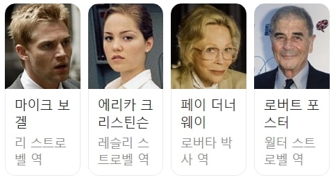 • 주연 배우: 마이클 보겔, 에리카 프리스틴슨, 페이더너웨이, 로버트 포스터