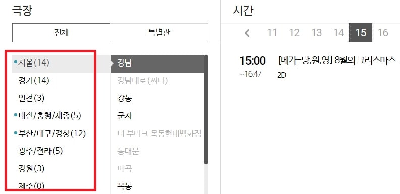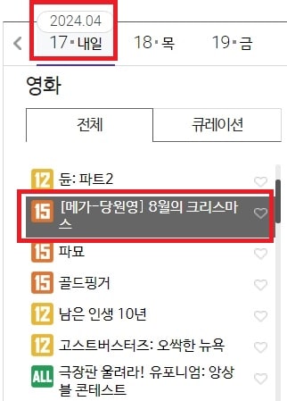 17일(수) 메가박스에서 단독으로 재개봉하는 8월의 크리스마스 상영관에는