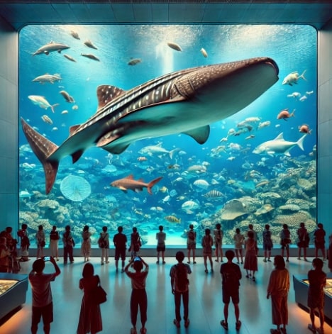 이 수조는 수족관의 메인 명소로서, 거대한 고래상어와 다양한 해양 생물을 가까이에서 볼 수 있어 관람객들에게 강렬한 인상을 남깁니다.