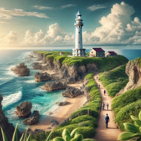 잔파 곶은 오키나와의 서쪽 끝자락에 위치한 웅장한 절벽과 푸른 바다가 어우러진 자연 명소로, 그야말로 오키나와의 자연을 만끽할 수 있는 장소입니다.