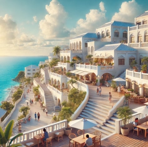 테라스 곳곳에는 다양한 상점과 카페가 있어, 여행자들은 오키나와의 아름다운 바다를 바라보며 여유로운 시간을 보낼 수 있습니다.