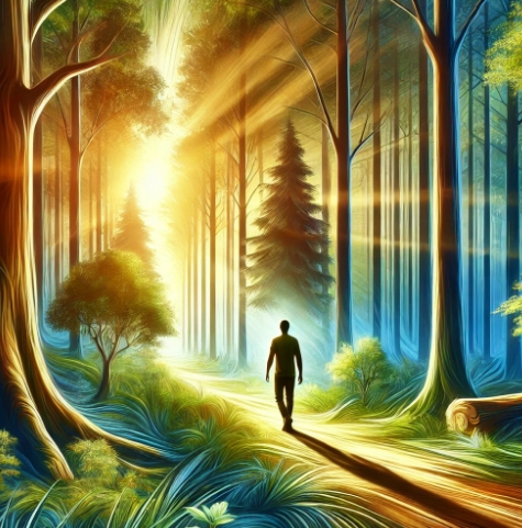 푸른 나무와 맑은 공기를 느끼며 걷는 동안 그는 자신이 자연의 일부임을 깨달았고, 도시의 소음에서 벗어나 마음의 여유를 찾았습니다.