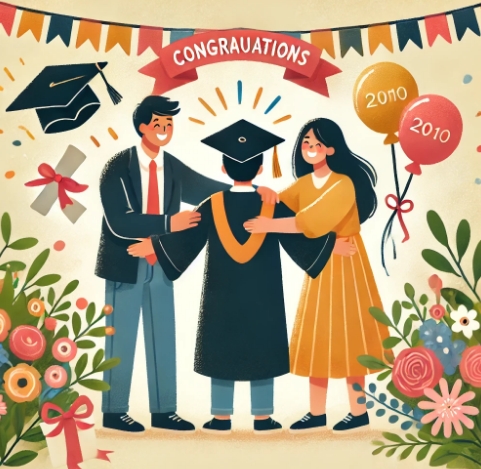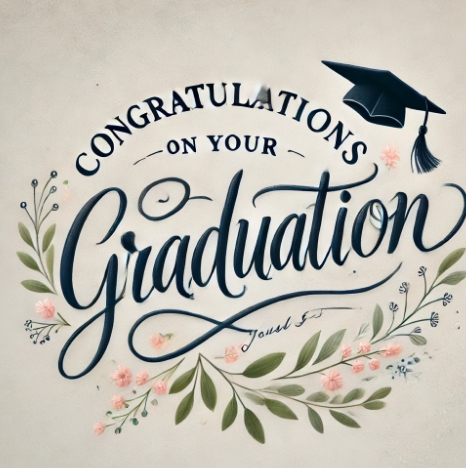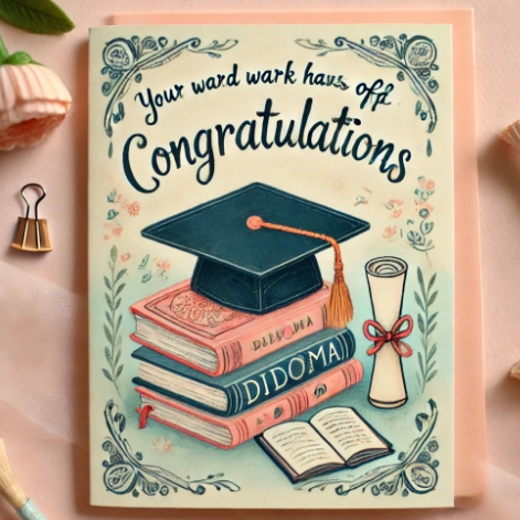 - "졸업이라는 큰 성취를 이뤄낸 당신이 자랑스럽습니다. 새로운 시작을 맞이하는 지금, 모든 일이 잘 풀리길 바랍니다!"