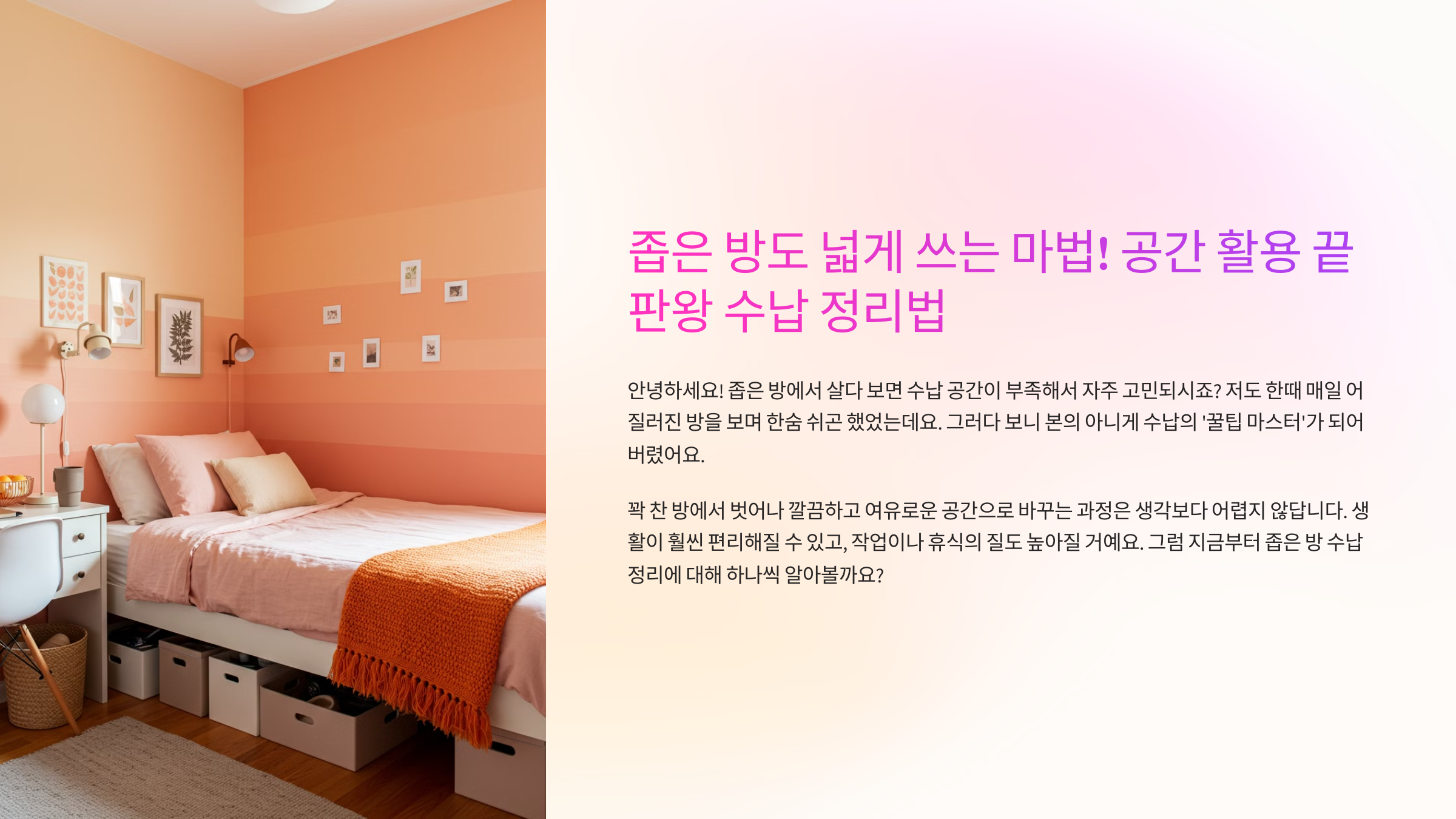 좁은 방도 넓게 쓰는 마법! 공간 활용 끝판왕 수납 정리법