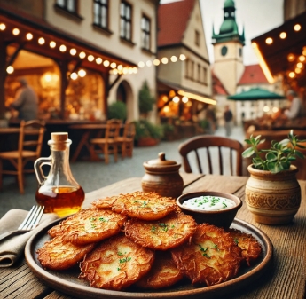 브람보라키는 체코식 감자전으로, 갈아낸 감자를 반죽해 바삭하게 튀겨낸 요리입니다. 굴라쉬와 함께 곁들여 먹거나 간단한 간식으로 즐기기에 좋습니다.