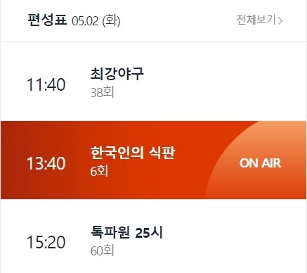 한국인의 식판 재방송시간 및 온에어 라이브 TV 바로가기