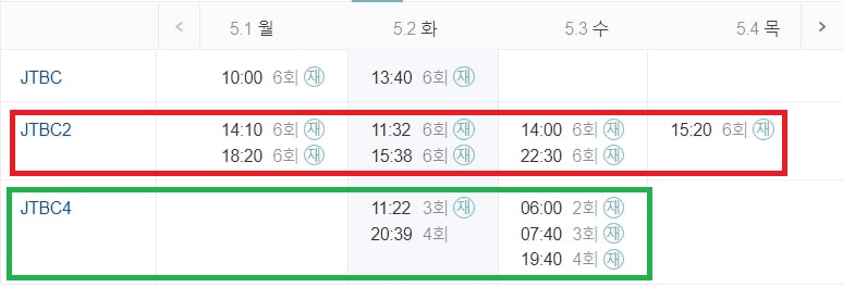 회차와 재방송 편성시간을 잘 확인하신 후 시청하시면 되는데 여기에서는 JTBC는 다들 알고 계실테니 2&4 채널의 번호를 확인할 수 있는 홈페이지 주소를 알려드리도록 하겠습니다.