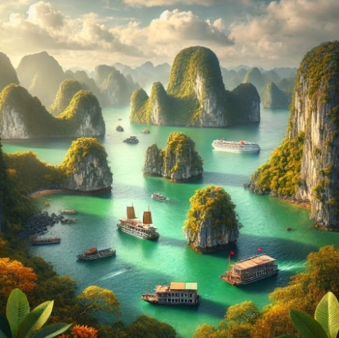 하롱베이는 유네스코 세계문화유산으로 지정된 곳으로, 수천 개의 석회암 섬이 에메랄드빛 바다 위에 떠 있는 듯한 풍경을 자랑하며, 섬들 중 일부는 동굴과 해변을 가지고 있어, 크루즈 여행 중에 다양한 액티비티를 즐길 수 있는 기회도 많습니다.