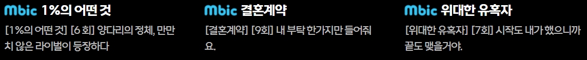 우선 지금 무료에서는 매주 수요일 새롭게 드라마들이 업데이트 되기에 보시고 싶은 작품이 있다면 빠르게 보시는 걸 추천드리고 MBC 홈페이지 로그인을 해야 보실 수 있으며, 엠빅라이브를 통해 보실 경우 연속 방송으로 실시간 방송되기에 중간중간 놓칠 수도 있지만 로그인 없이도 시청할 수 있습니다.